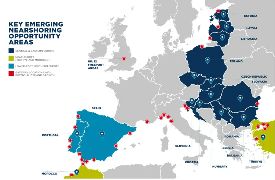Nearshoring proizvodnje v srednjo in vzhodno Evropo ter Turčijo pomeni, da vse več izdelkov za evropski trg nastane znotraj širše regije – in potrebuje skladiščenje bližje tovarnam, ne na drugi strani sveta.